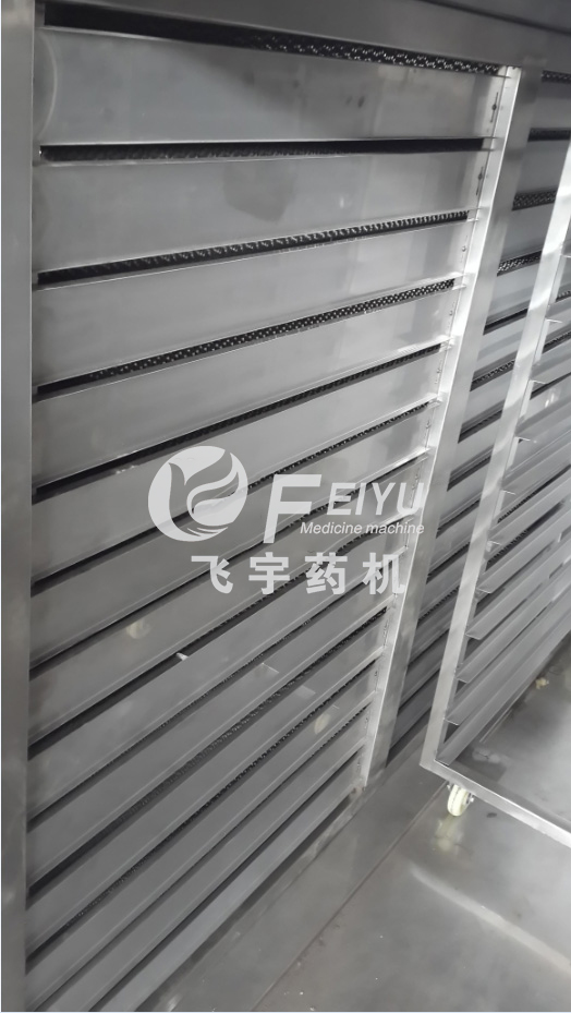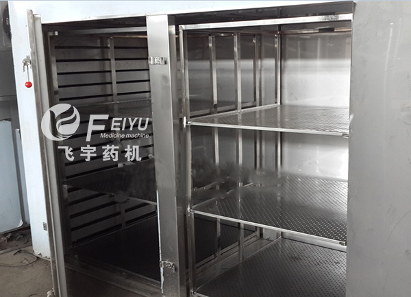 2、利用強制通風(fēng)作用,箱內(nèi)設(shè)有可調(diào)式分風(fēng)板,物料干燥均勻。熱源可采用蒸汽、熱水、電、遠紅外,選擇廣泛。